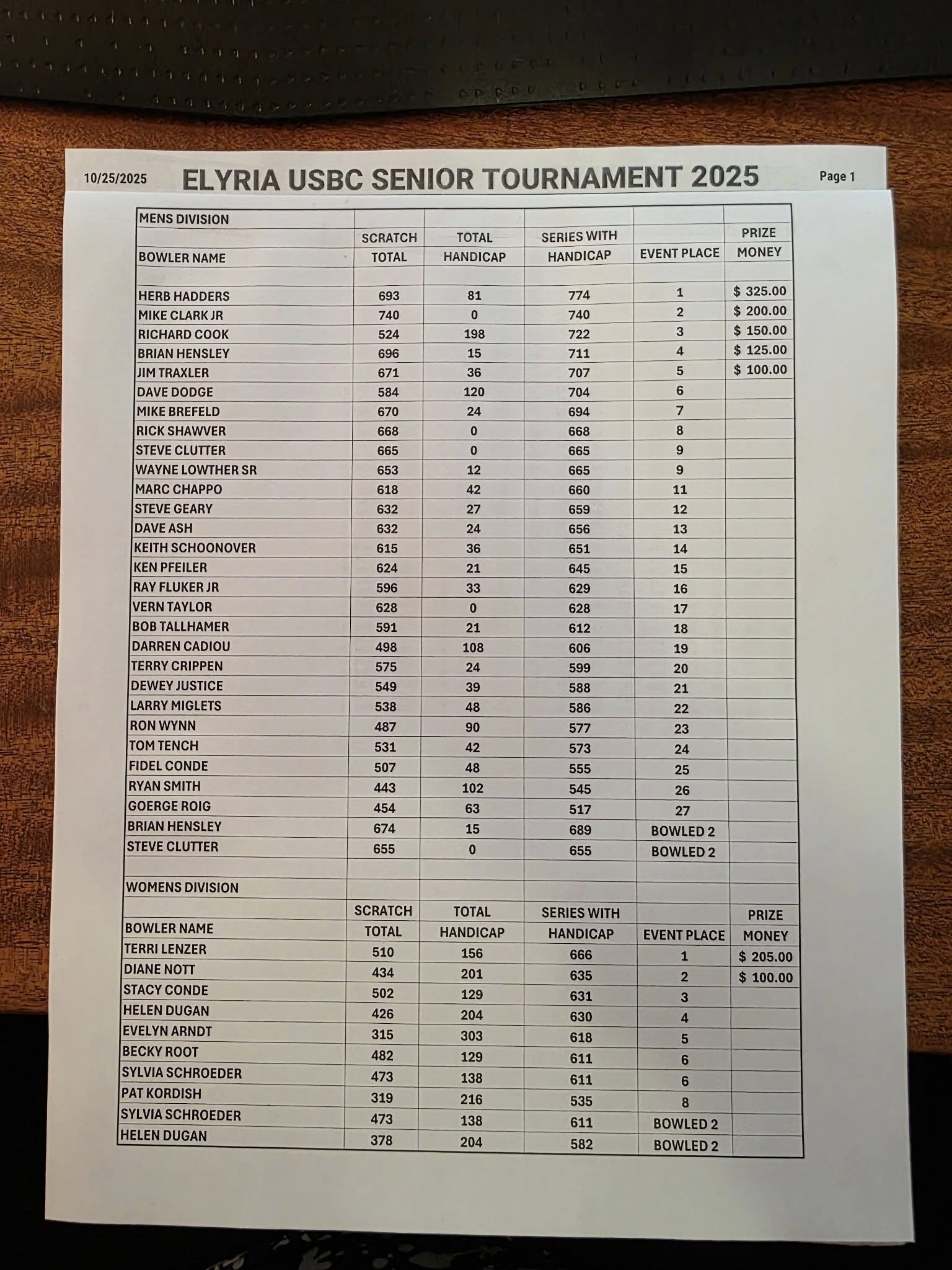Elyria USBC 15th Annual Matt Ruth 700 Memorial Singles Bowling Tournament